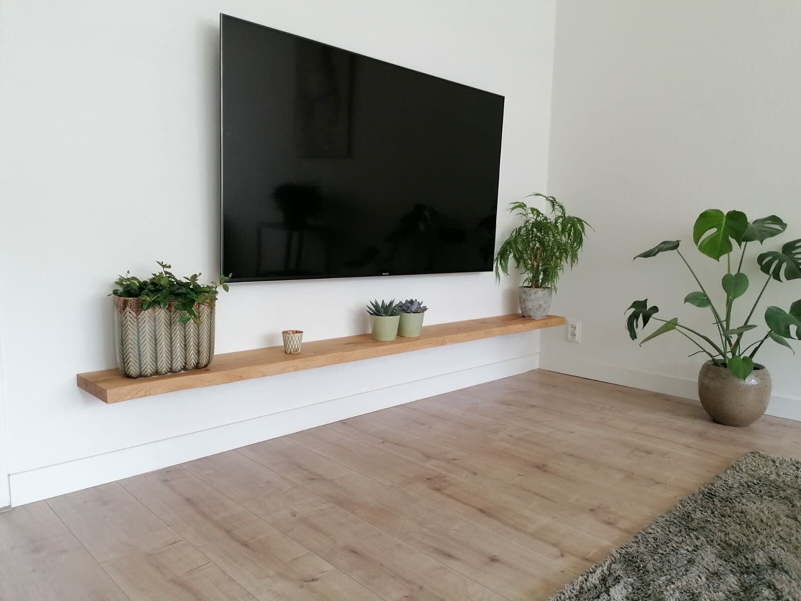 TELED 03 Tv plank/ wandplank, rustiek eiken met natuurlijke voorkant 25cm breed 100, 120 en 150cm lang