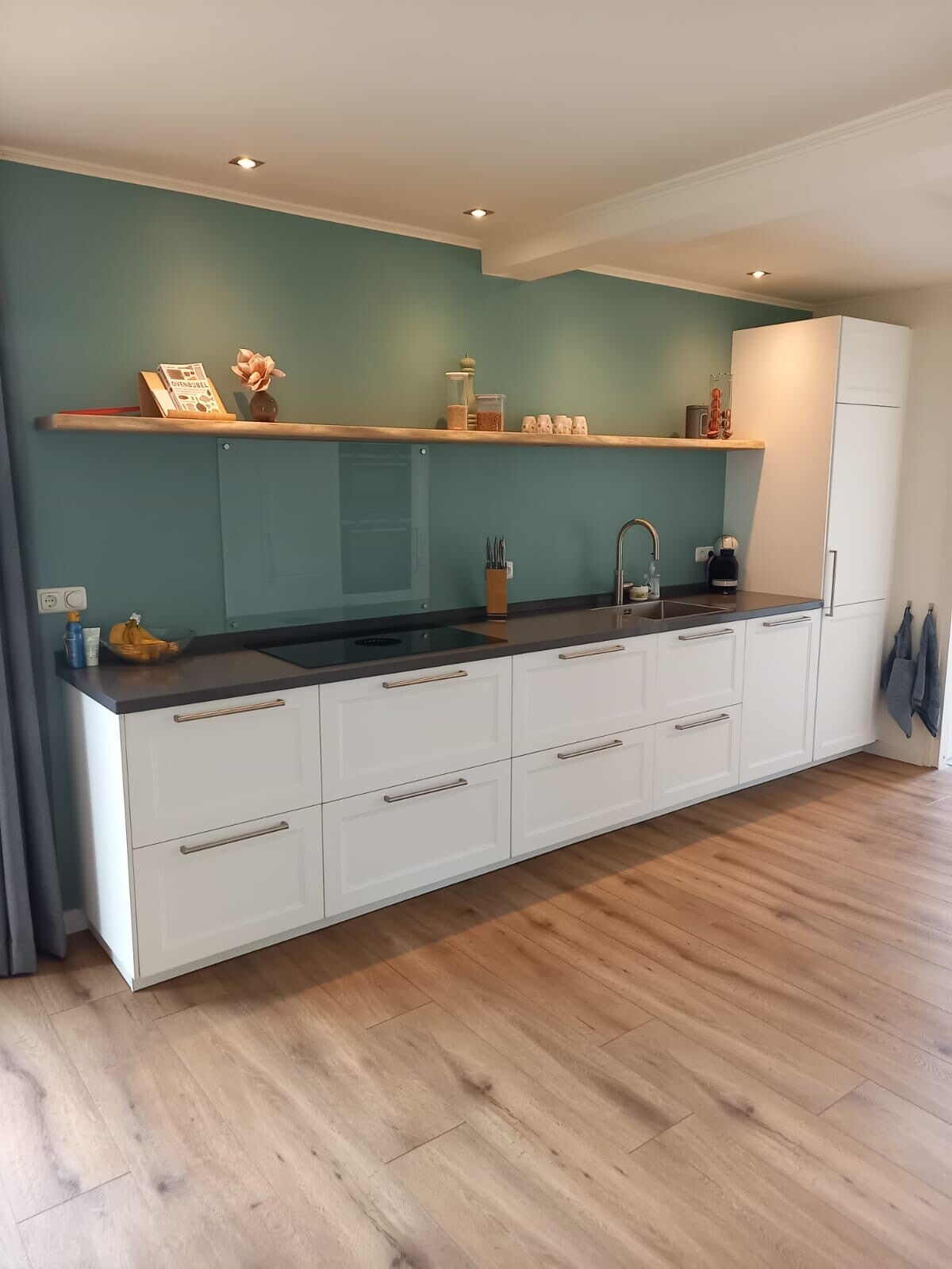 De wandplank wordt voorzien van dimbare ledstrip, led strip stop bij planken tot 150cm lang 10cm voor de uiteinden, planken langer dan 150cm is dit 20cm.