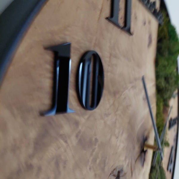 De mos klok 50cm, eiken en mos, cijfers en letters, zwart uurwerk