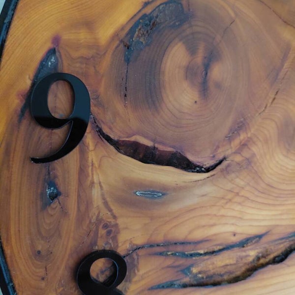 Doorkijk klok van taxus 40cm, zwarte ring cijfers, zwart uurwerk